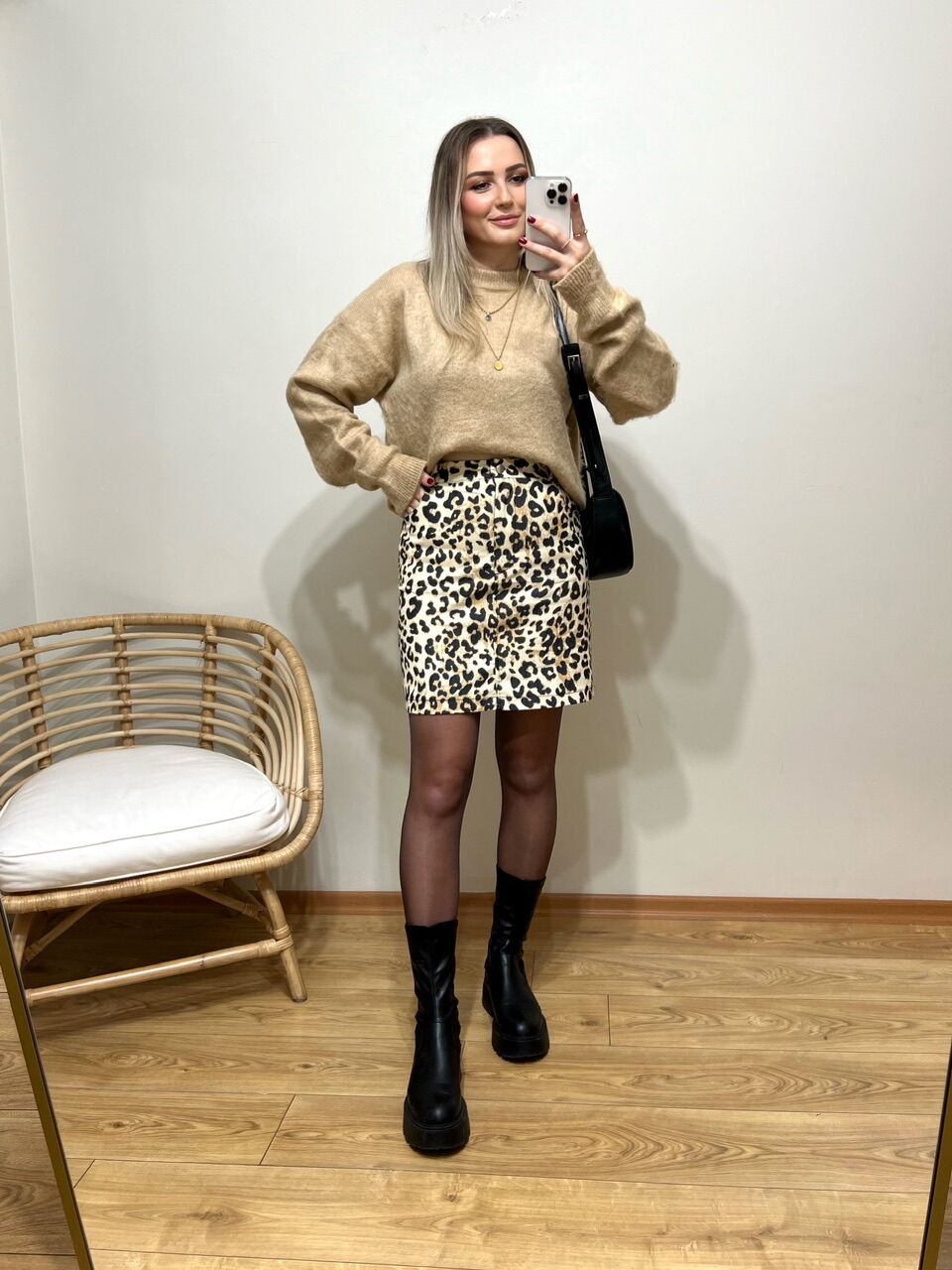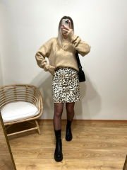 LEOPAR DESENLİ ARKASI CEPLİ ETEK