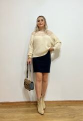 ORJ MARKA TÜL DETAYLI BEJ KAZAK