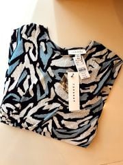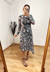 ORJİNAL MARKA MAVİ SİYAH DESENLİ ASİMETRİK ELBİSE